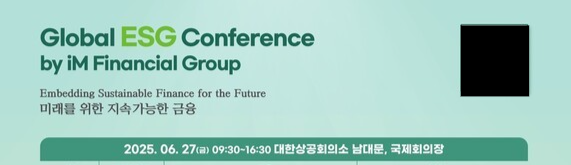 [아시아에이=이수현 기자] iM금융그룹은 오는 6월 27일 서울 대한상공회의소 국제회의장에서 개최하는 ‘글로벌 ESG 컨퍼런스(Global ESG Conference)’ 사전접수를 진행한다고 21일 밝혔다.