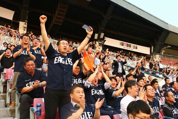 [아시아에이=이시영 기자] 한화는 지난 27~29일까지 서울 잠실야구장에서 열린 한화 이글스와 LG트윈스 간의 주중 3연전을 맞아 임직원 단체 응원 행사인 '이글스 데이(Eagles Day)'를 개최했다고 30일 밝혔다.