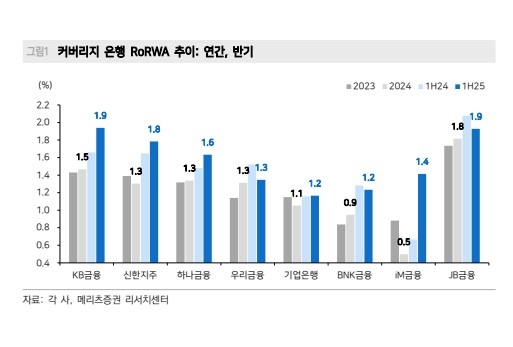 조아해 메리츠증권 연구원은 주주환원의 지속 가능성을 위해 RoRWA(자기자본이익률) 제고가 필수적이며, ROE(자기자본이익률) 개선에 집중해야 한다고 강조했다.